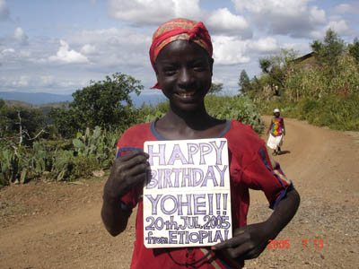 薪運びで鍛えた健康美人。友人への誕生日プレゼントとして送ろうと思って年の数だけ写真を集めまして、メッセージを持ってもらいました。旅行をしていると、すごく家族友人が恋しくなって誕生日には何か贈りたくなります。そんな、金はないけど時間は売るほどある節約パッカーにおすすめのプレゼントです。地元の人や他の旅行者と仲良くなるのに一役買ってくれるし、一石二鳥です。