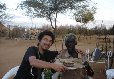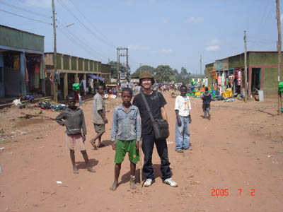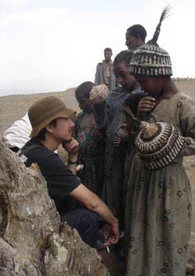 トゥルミ。宿の庭で。通称「Mr. Goat」という爺さんです。Mr.は昔、自分の娘をたったヤギ3匹で売りました。しかし何があったか娘はMr.の元に帰されてしまい、先方にヤギを返せと言われたMr.は逆ギレしながら2匹返したのだそうです。一体どういう種類のエピソードなのか正確には判りかねますが、皆大笑いしながら話してくれたのでMr.は「変人ながら愛すべき人」のようでした。妙に面白かったので珍しくインジェラ奢ってしまいました。夕食後ビール飲みながら話していて、エチオピアにも「警ドロ」に近い遊びがあることがわかりました。もちろん警察は泥棒を追いかけて、牢屋があって、捕まったら助けに行って…とほぼ同じに思われたのですが、こちらでは、「ドロボウ」は始めから全員全裸なんですと。なんか、わかる。