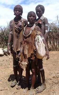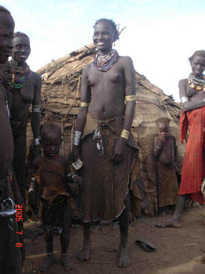 市場に出てくるハマル族。全身、髪の毛を赤土で染めた民族。何のかわからないのですが、独特の匂いがします。あまりいい香りとは言えません。このようにカメラ目線をもらうのは残念ながらタダの好意ではありません。1ブル(約12円)払っています。もうとっくに彼女たちは西洋の文明を知っていますから、当然といえば当然なのです。
