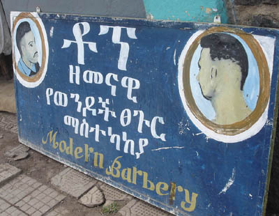 床屋の看板。このヘアスタイルの人は見ませんでした。