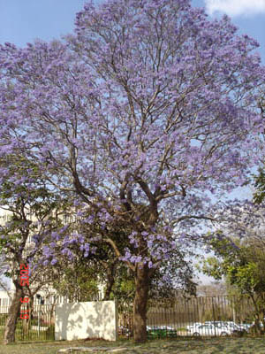 楽しみにしていたジャカランダの樹が見られました。桜のように咲いてとても綺麗です。しかし、やはり桜の儚い感じはないのでした。