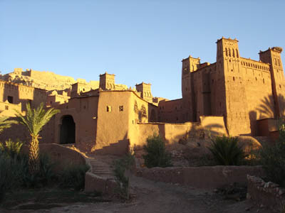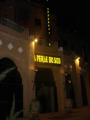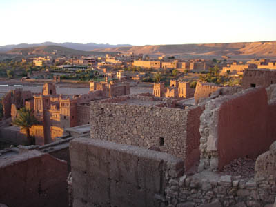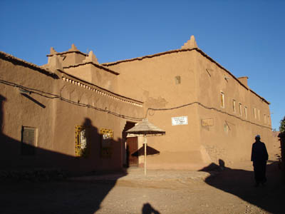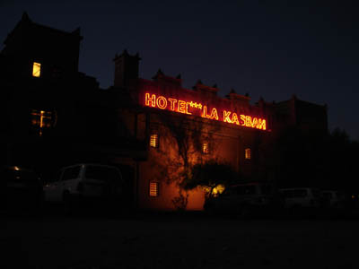 世界遺産、アイト・ベンハドゥ(Ait Benhaddou)の集落に着きました。泊まった民宿から見えたお高めなホテルの夜景。砂漠にネオンがとても美しかった。明日は早朝から集落の中へ向かいます。