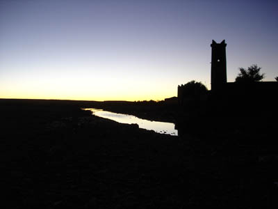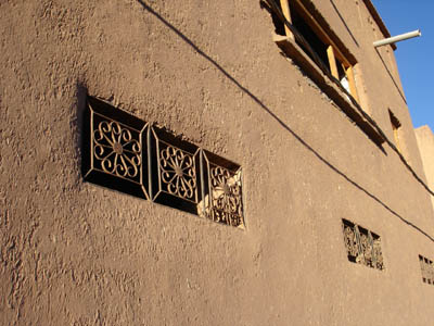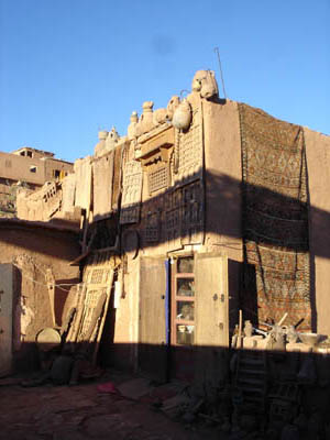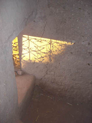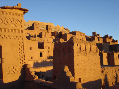 強い朝日を浴びて輝く土の集落。影のくっきり出る朝と夕方が最高です。