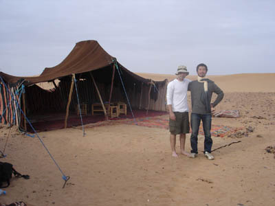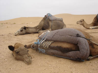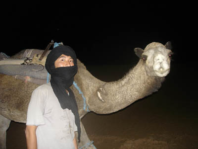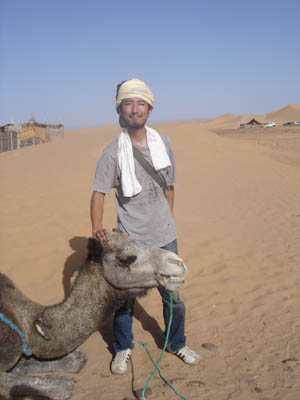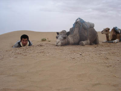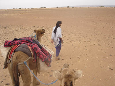 ティグレットからサハラ砂漠へ。一人一頭ラクダを借りられます。ずっと乗ってるとお尻が痛くなるので、途中で降りてラクダを引っ張って歩いてました。慣れると楽なんでしょうか。