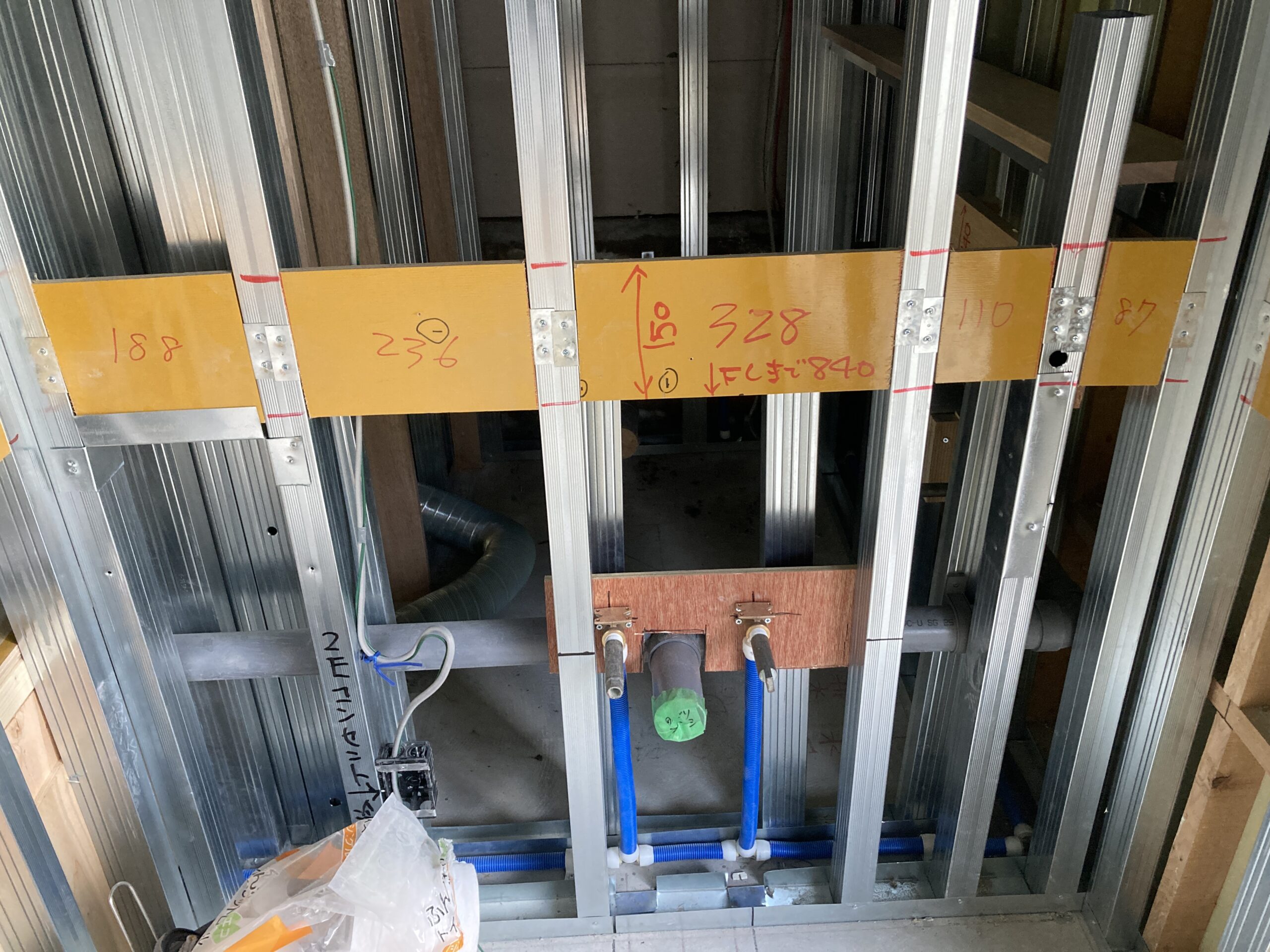 下地・配管工事。